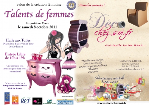 Le samedi 8 Octobre s'est déroulée la 1ère édition du salon "Talents de Femmes" organisée par l'Association Soroptimist à la Halle aux Toiles à Rouen.