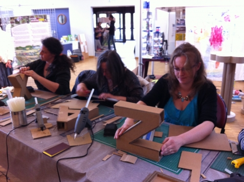 L après-midi, des visiteurs ont eu le loisir de participer à un Atelier découverte Carton "Lettre en 3D"